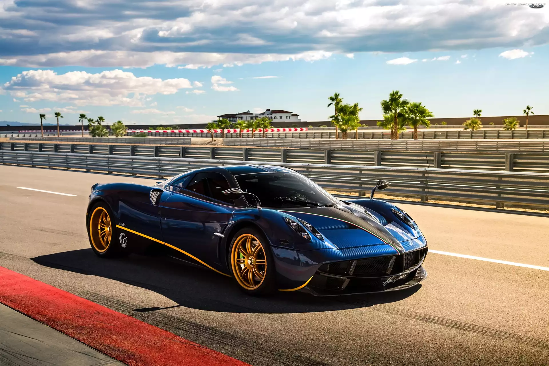 Pagani Huayra, Drzewa, Niebieski, Droga- Zdjęcia samochodów