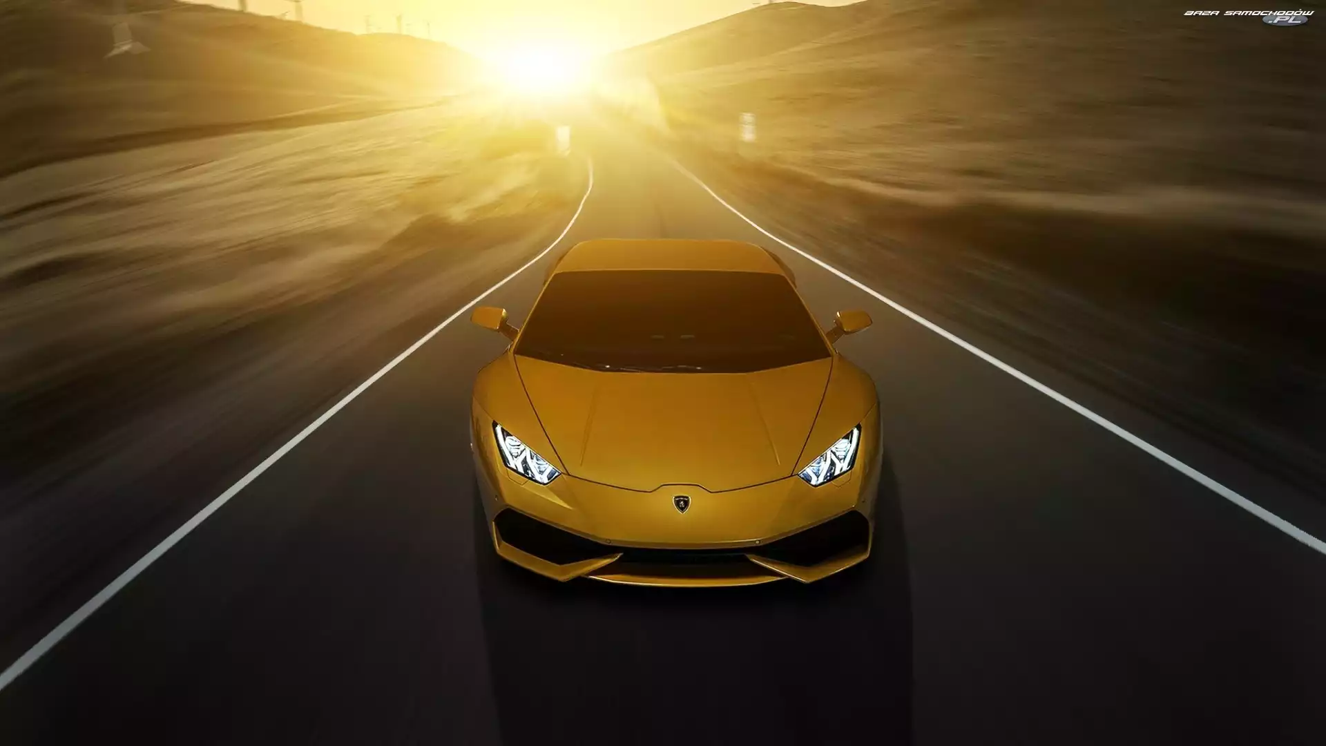 Słońca, Wschód, Huracan, Lamborghini, Droga- Zdjęcia samochodów
